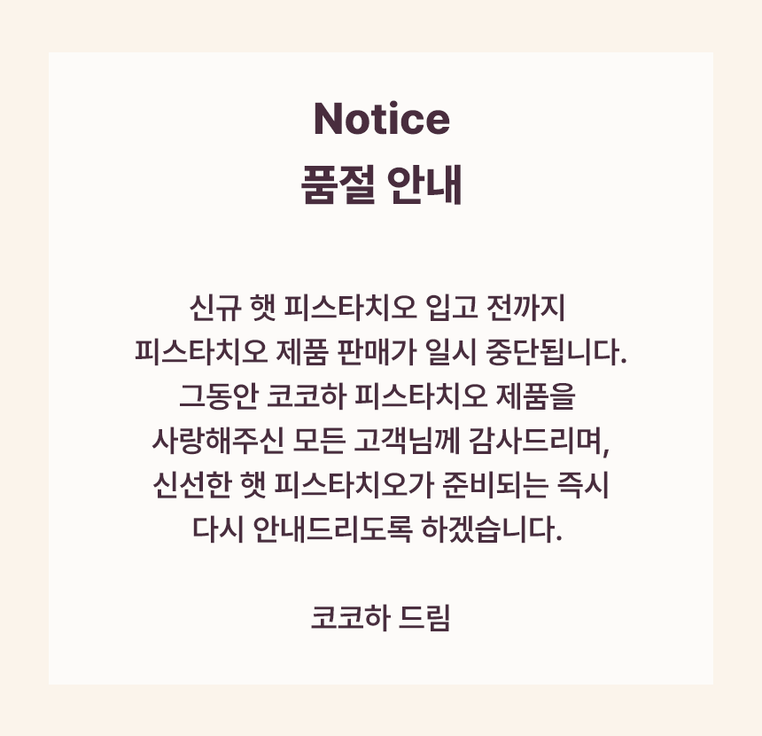 인위적인 첨가물 없이, 신선한 생크림과 모래설탕 등 엄선된 재료만을 사용한 무첨가 카라멜로, 갓 구운 피스타치오가 그대로 박혀 있어 한층 더 고소하고 깊은 맛을 자랑합니다.