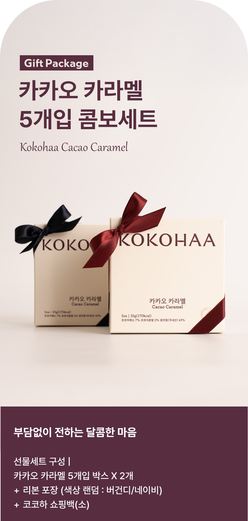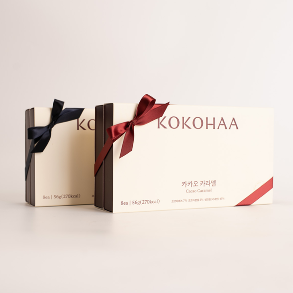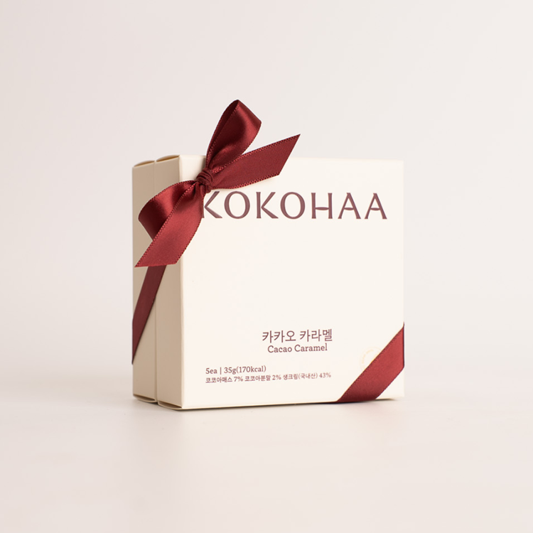 코코하의 베스트셀러, 카카오 카라멜을 담은 5개입 콤보 선물세트입니다.