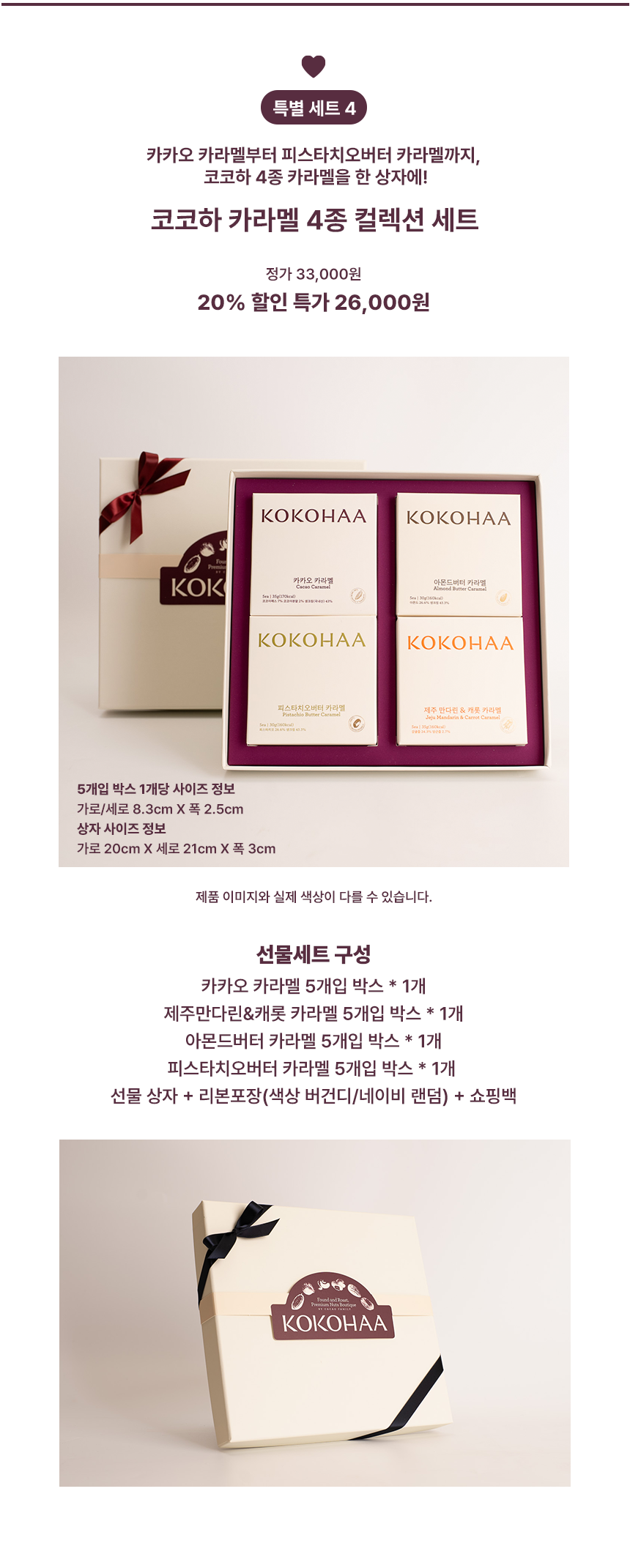 코코하의 시그니처 카카오 카라멜을 가득 담은 100개입 대용량 선물세트입니다.