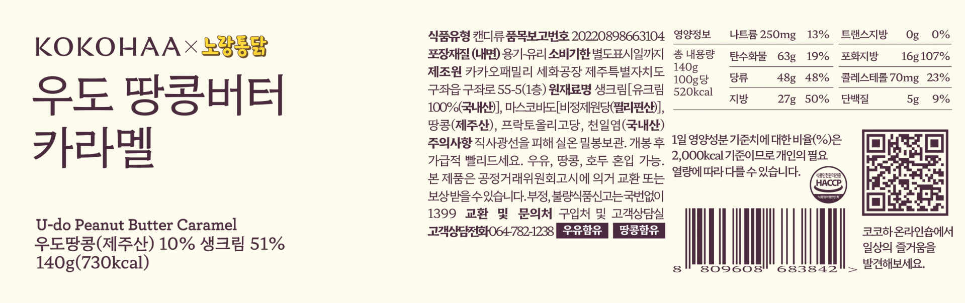 [코코하 X 노랑통닭] 콜라보 기념 수제 카라멜 2종 특가 I 우도 땅콩버터 카라멜 & 카카오 카라멜
