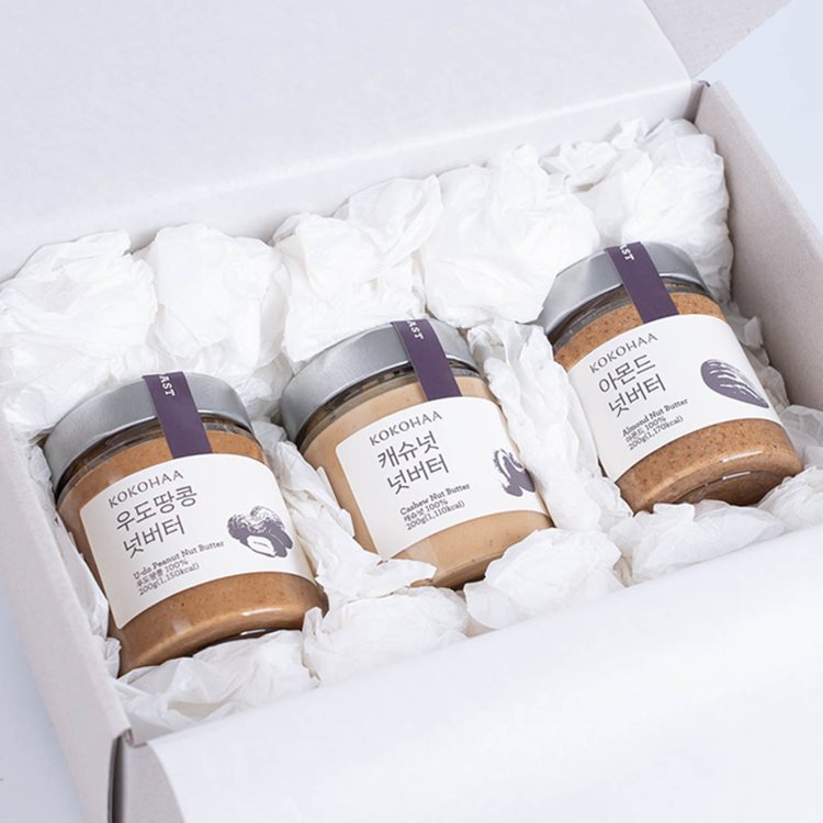 코코하 넛버터 시그니처 3종을 고급스러운 그레이 박스에 풍성하게 담았습니다.