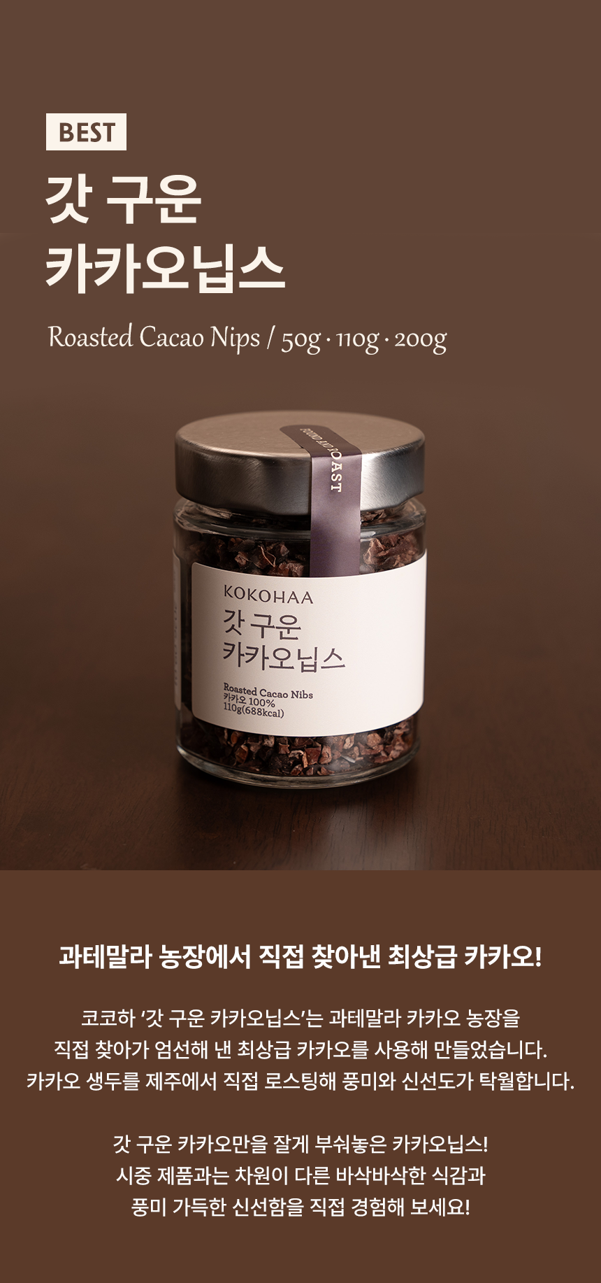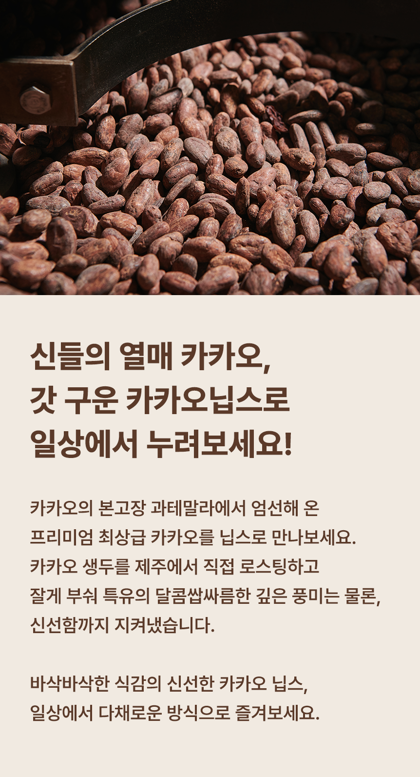 제주에서 직접 볶아 더 신선한, 과테말라 싱글오리진 카카오 원두