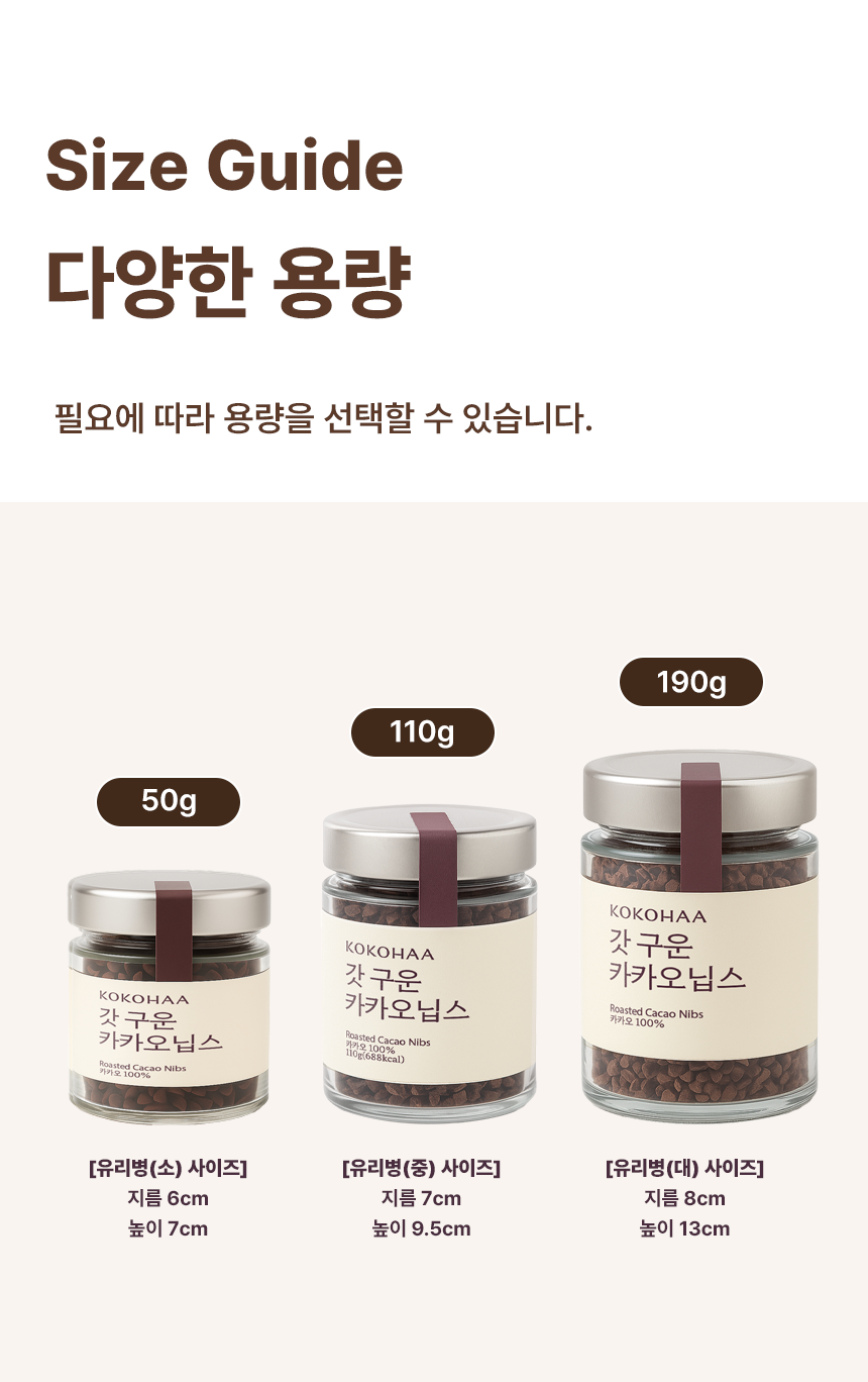 용량 옵션 50g / 110g / 190g / 1kg